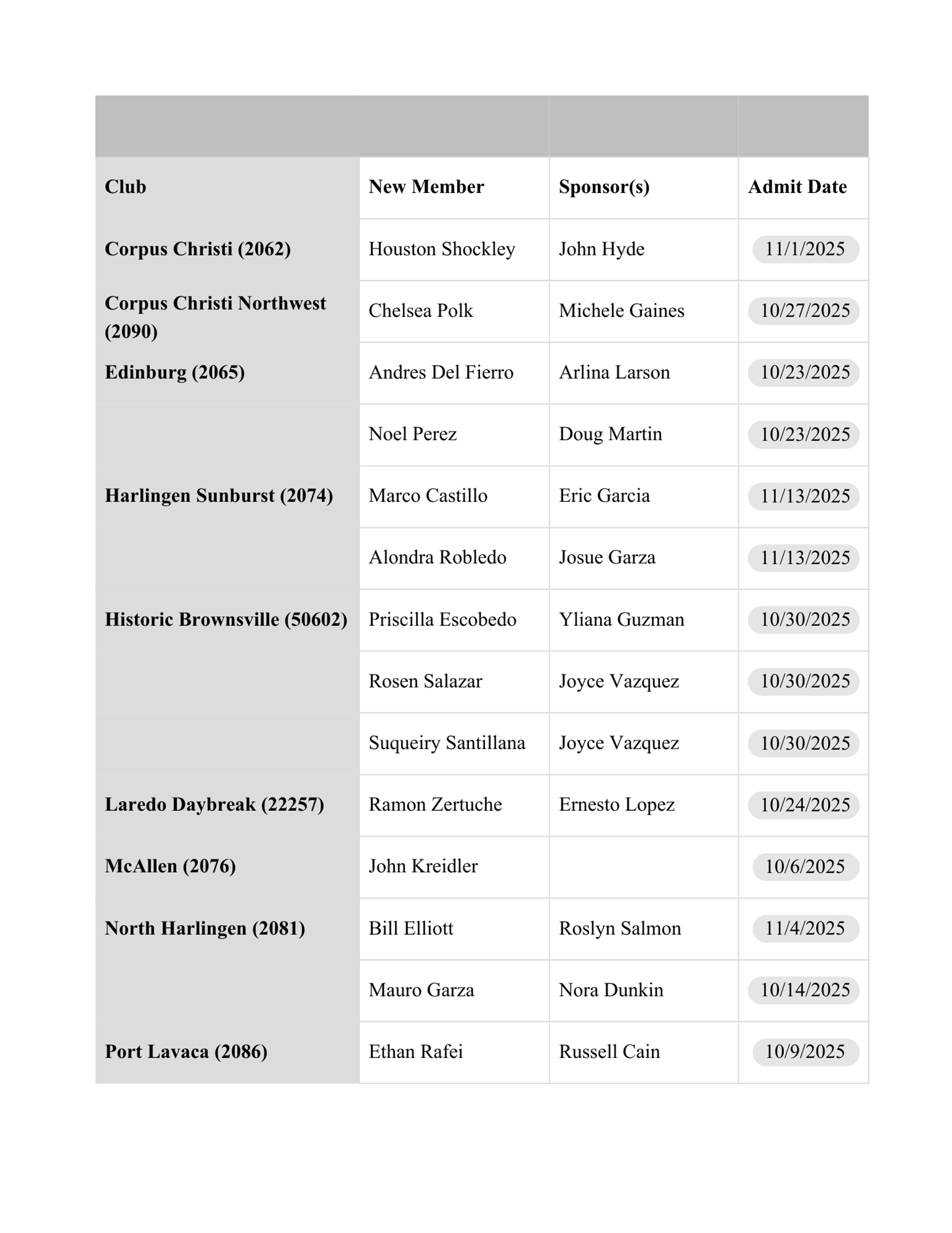 Welcome New Members October and November